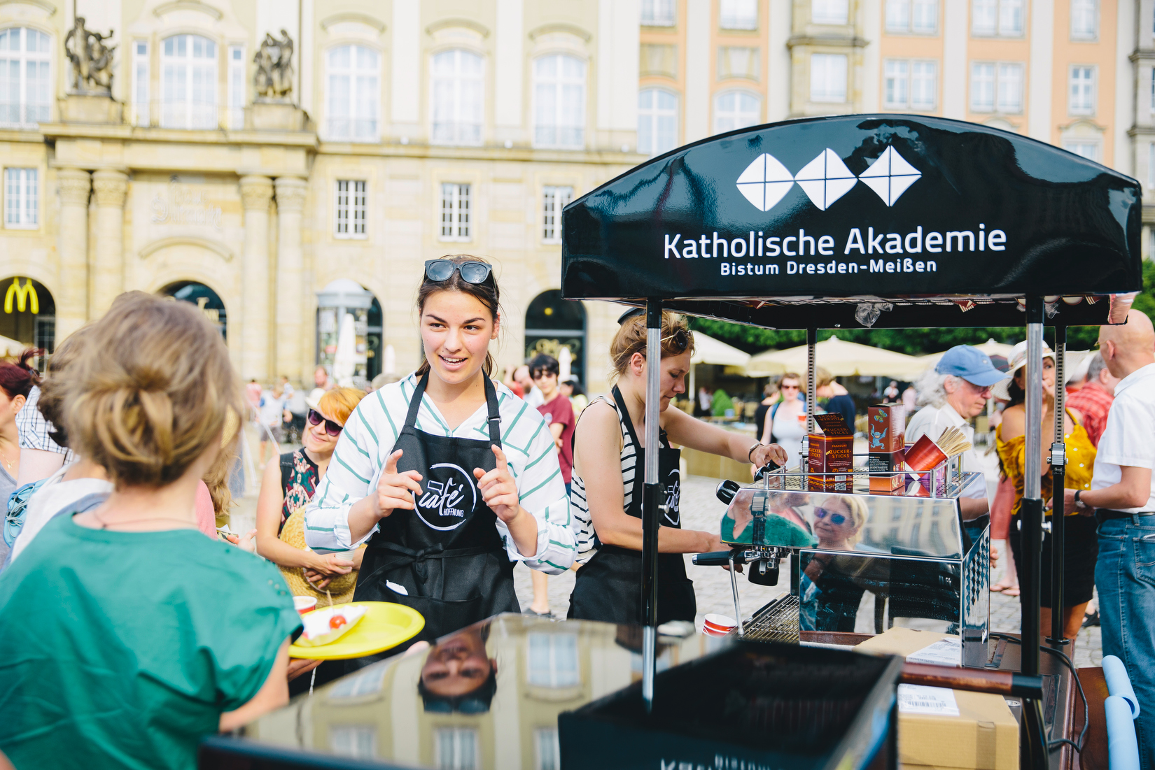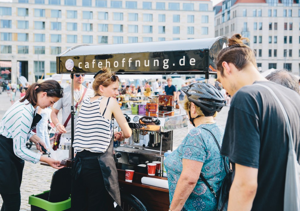 Seit Anfang 2019 verfügt unser Verein über ein modernes Kaffee-Mobil, eine fahrbare und voll funktionstüchtige Espresso- und Kaffeebar, die von unseren Mitgliedsverbänden und Mitgliedern für ihre gemeinnützigen Zwecke genutzt werden kann. U.a. diente das Gefährt bereits für das Projekt “Café Hoffnung” der Katholischen Akademie im Bistum Dresden-Meißen. Bei Interesse, das Kaffee-Mobil (Beispielbild unten) für Ihr Ehrenamtsprojekt auszuleihen, wenden Sie sich bitte an unseren Verein.
